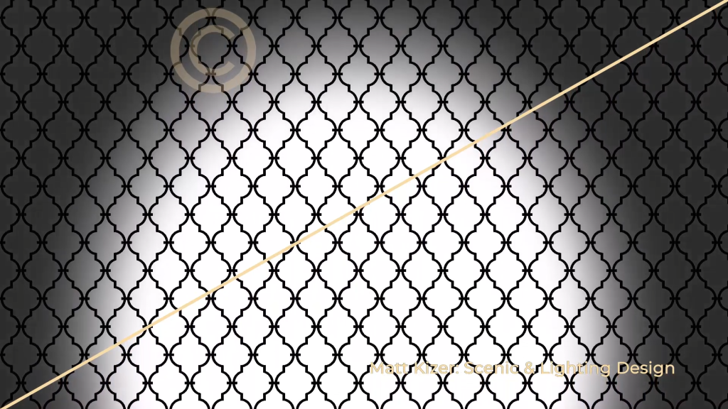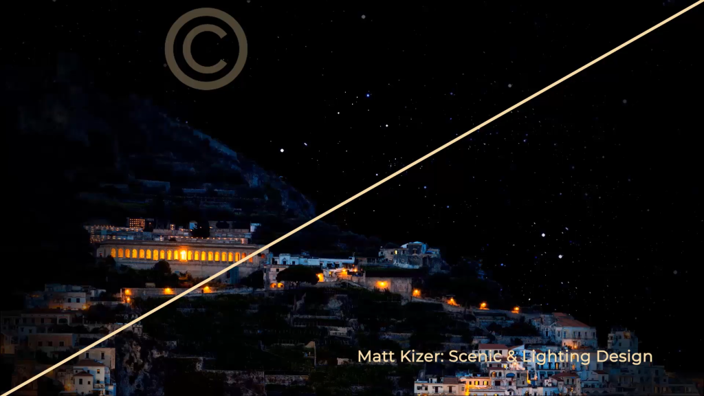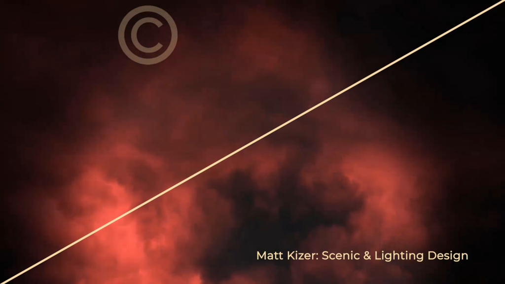 The original production using this media (above) had multiple projectors with slightly different compositions. This media is adapted to fill one screen while remaining faithful to the original design.